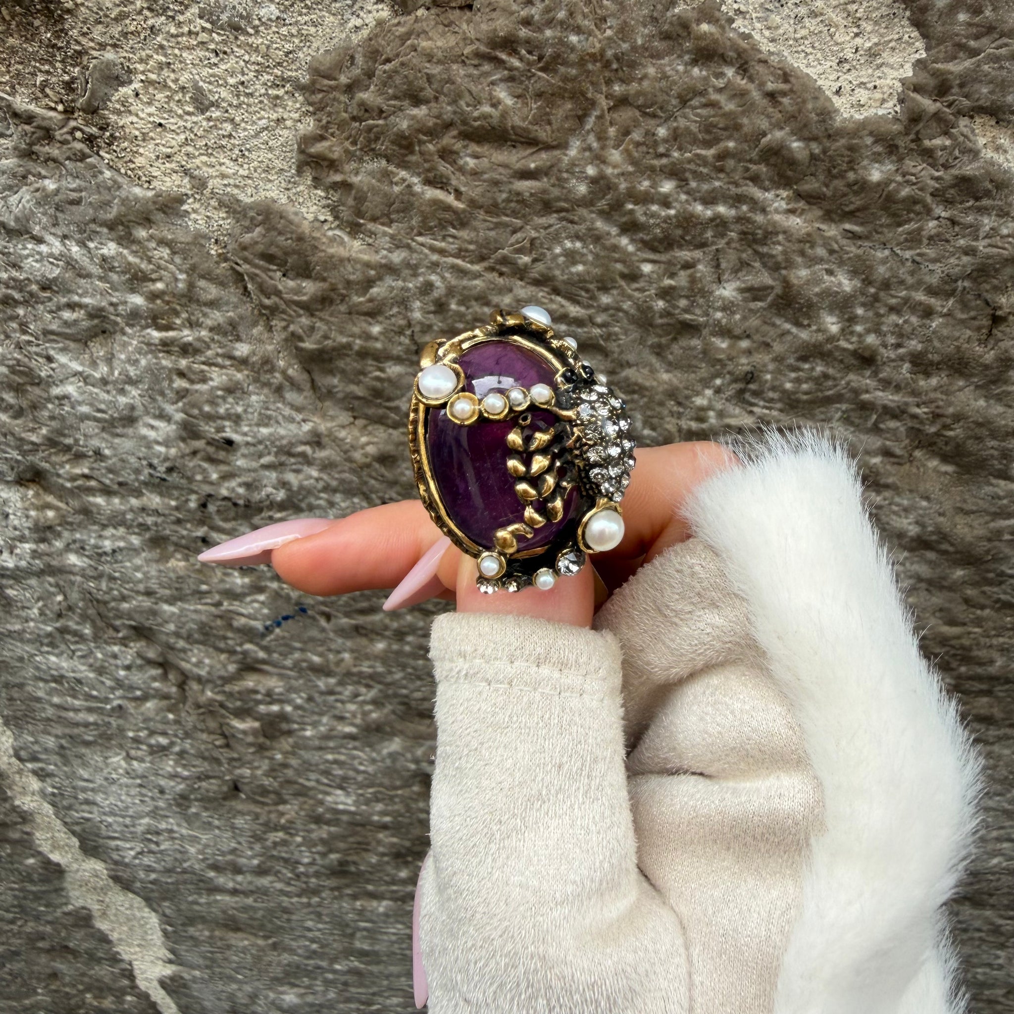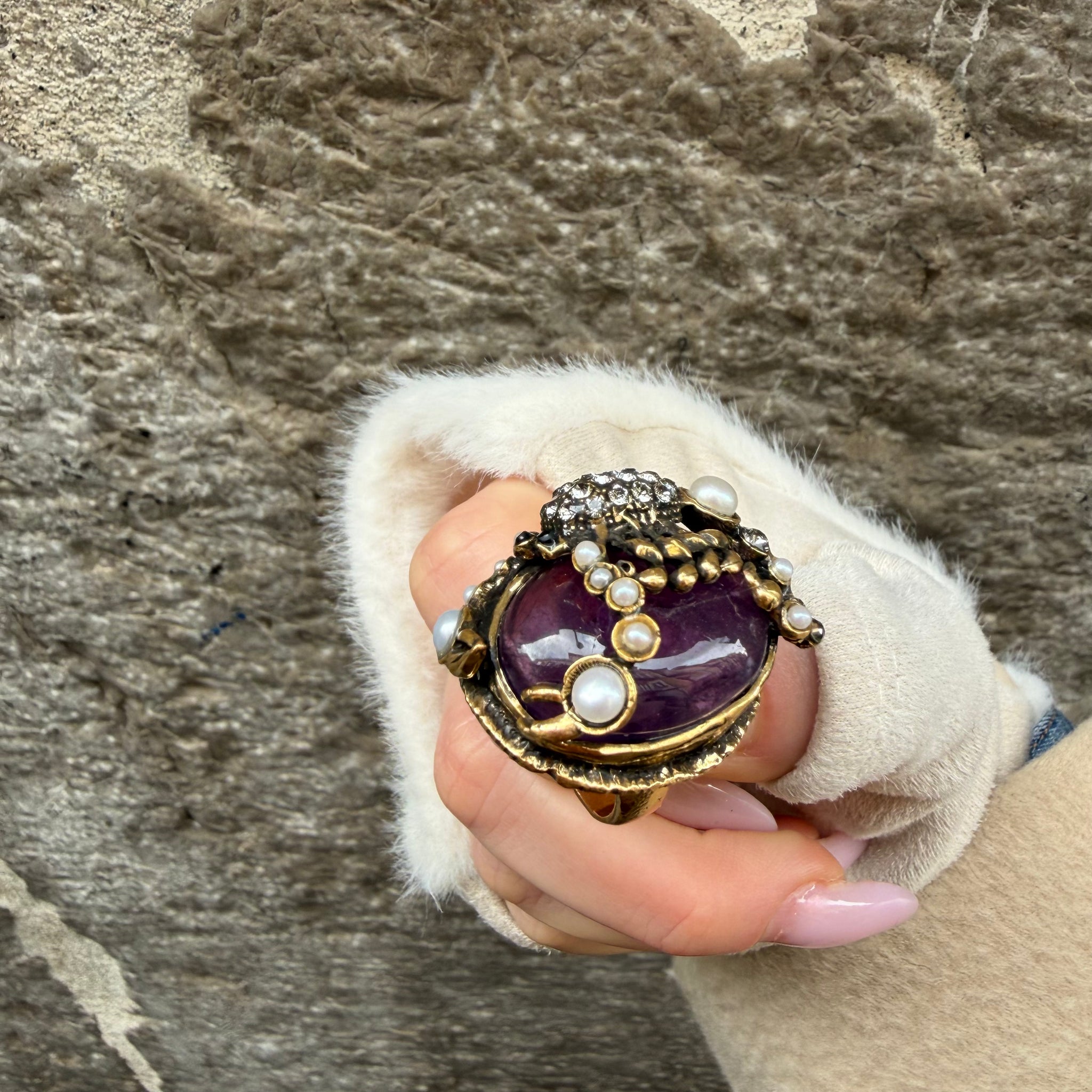 pezzo unico con ametista, perle e zirconi con scorpione firmato Alcozer & J.