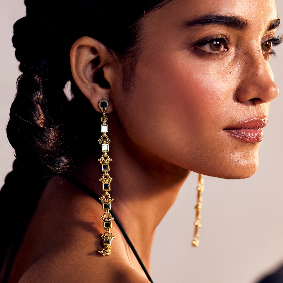 Orecchini pendenti placcati in oro giallo e specchietti.