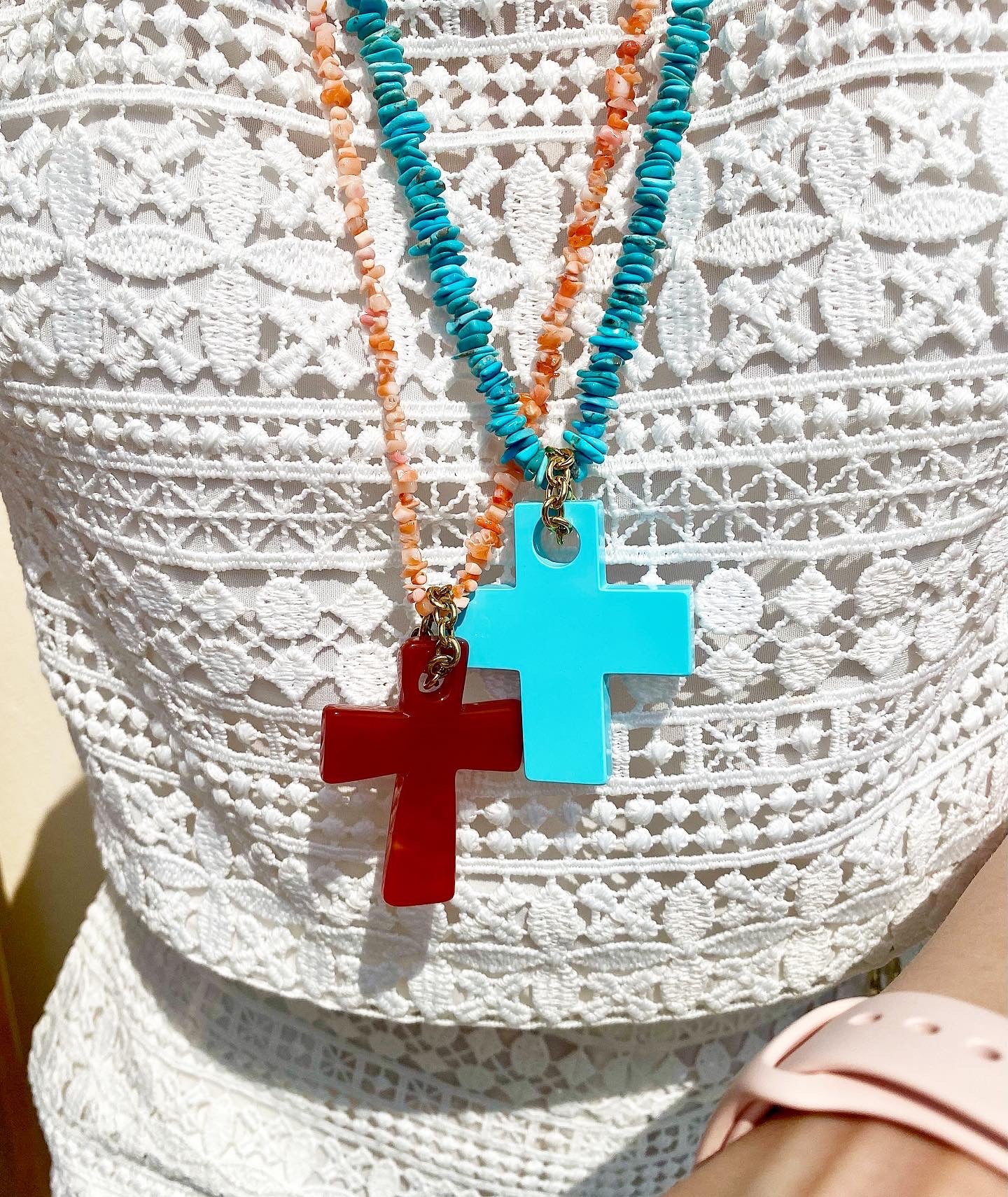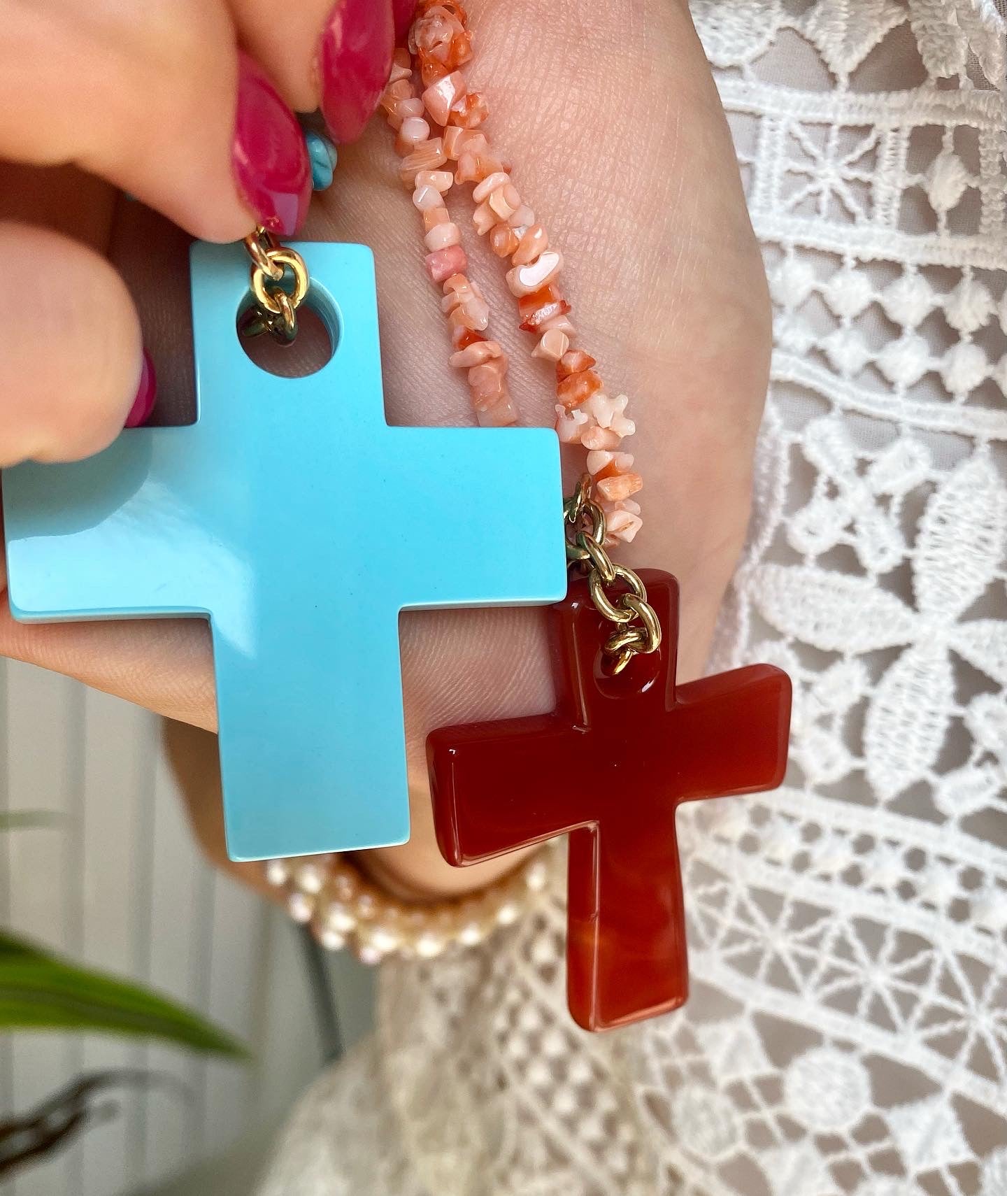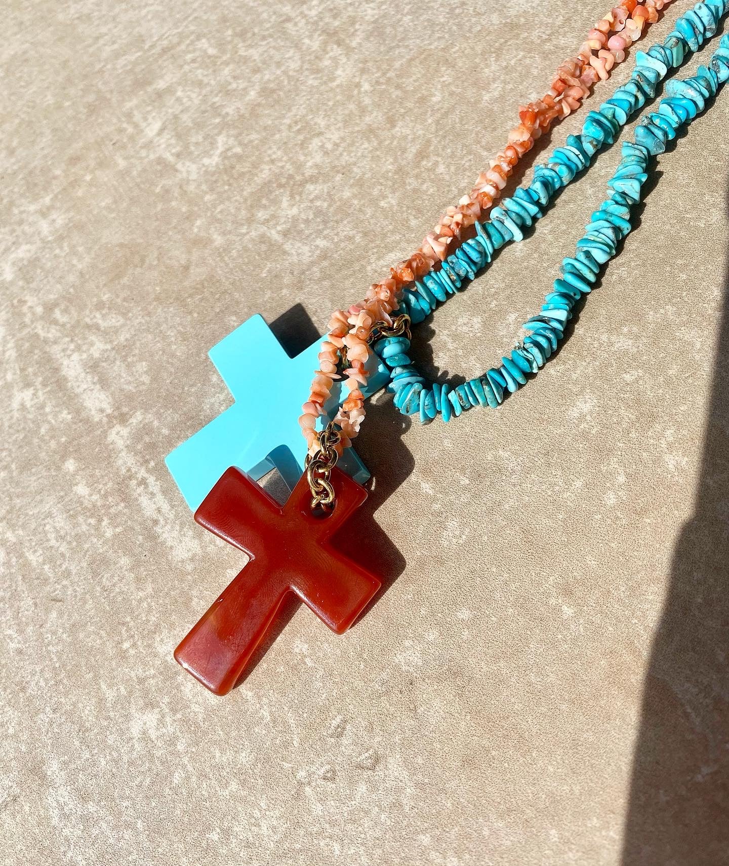 Collana lunga 80cm in pietre naturali, corallo o pasta di turchese e turchese.